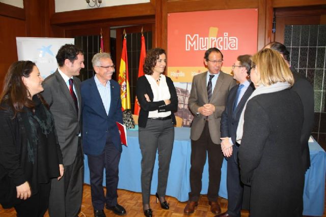 El alcalde de Murcia, Miguel Ángel Cámara, el director del área social de la Fundación "la Caixa", Marc Simón, y la delegada de “la Caixa” en Levante y Murcia, Beatriz Alventosa, han firmado hoy el acuerdo con el que se pretende potenciar y garantizar los proyectos impulsados por este programa de Fundación "la Caixa", y asegurar así la máxima eficacia y eficiencia de sus resultados. Al acto han asistido las ediles María del Carmen Pelegrín y María Dolores Sánchez, responsables de Bienestar Social y de Educación, respectivamente, además de Antonio Sánchez, secretario general de Cáritas Murcia, y Juan Antonio Segura, director nacional de CEPAIM Murcia.