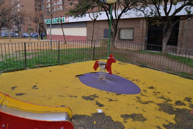 El Grupo Socialista denuncia el mal estado de los juegos infantiles en el jardín de la Avenida de La Fama