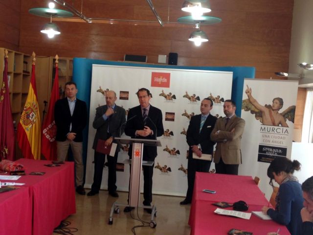 El Alcalde de Murcia, Miguel Ángel Cámara, ha presentado esta mañana, acompañado por el Presidente del Real Cabildo Superior de Cofradías, Ramón Sánchez-Parra, la nueva marca turística Murcia, una ciudad con Ángel. Al acto también han asistido el Concejal de Turismo, Miguel Cascales, y el Concejal de Cultura, Rafael Gómez.