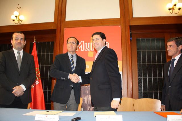 El avance será posible en virtud del Protocolo que han firmado esta mañana el Alcalde, Miguel Ángel Cámara, y el Consejero de Obras Públicas y Ordenación del Territorio, Antonio Sevilla, para la implantación de títulos de transportes compartidos por la concesionaria Transportes de Viajeros de Murcia (los “coloraos”), Tranvía de Murcia y la UTE Transportes de Murcia, cuyos representantes han estado presentes en el acto. También han asistido el Concejal de Tráfico y Transporte, Javier Iniesta, y el Director General de Transportes y Puertos, Antonio Sánchez-Solís. Las tres empresas implicadas han firmado ya este acuerdo, comprometiéndose a llevar a cabo el proyecto.