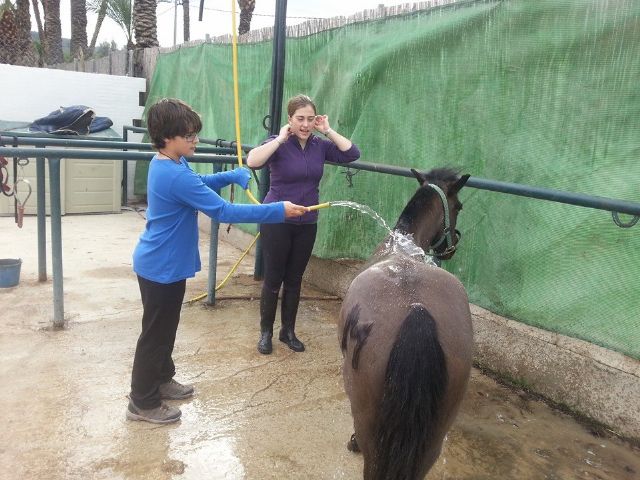 Los niños juegan, pasean por el campo, bañan a los caballos, les dan de comer, clases teóricas, clases en pista..