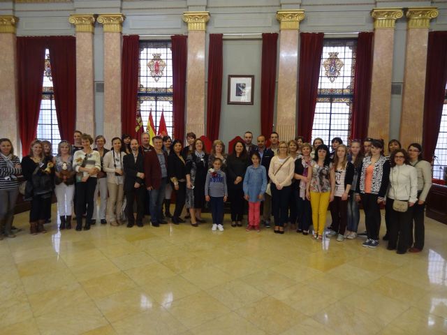 La Concejal de Educación, María Dolores Sánchez, ha ofrecido una recepción a profesores y estudiantes del CEIP Pedro Pérez Abadía y de centros educativos de Finlandia, Islandia, Inglaterra, Bulgaria, Dinamarca, Rumanía, Francia y Polonia que participan en un proyecto Comenius.