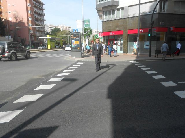 La recientemente reformada avenida Marqués de los Vélez es la primera en la que el Ayuntamiento ha reducido la pintura de la señalización horizontal.