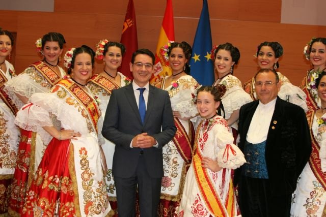 Durante la recepción, que tradicionalmente les ofrece el Gobierno regional tras su coronación, las reinas y las damas recibieron un escudo de la Región de Murcia, que el consejero prendió sobre sus bandas.