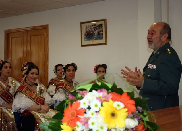 La Guardia Civil de Murcia ha recibido durante la mañana de hoy, la visita de la Reina de la Huerta 2014, Andrea Belmonte Martínez y su corte de damas de honor, junto con el presidente de la Federación de Peñas Huertanas, Antonio Avilés Soriano.