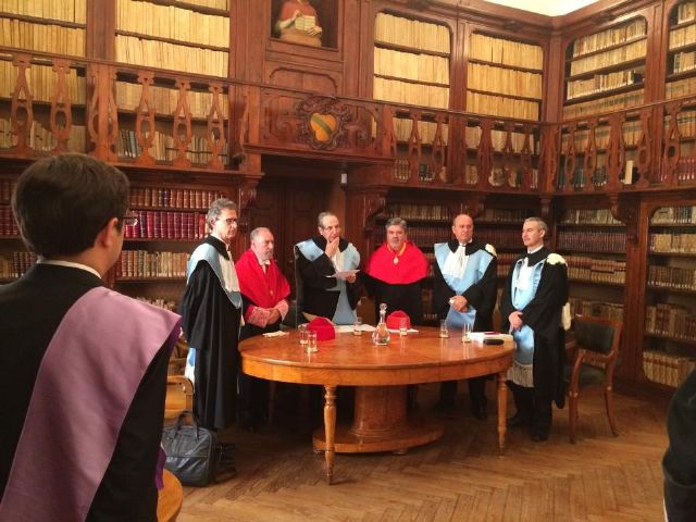 "La lucha del Derecho contra el negacionismo: una peligrosa frontera" es el título de la tesis doctoral, en cotutela internacional entre la Universidad de Murcia y la Universidad de Bolonia, que ha sido defendida por el investigador de la institución docente murciana Germán Manuel Teruel Lozano en el Real Colegio de España de la ciudad italiana.
