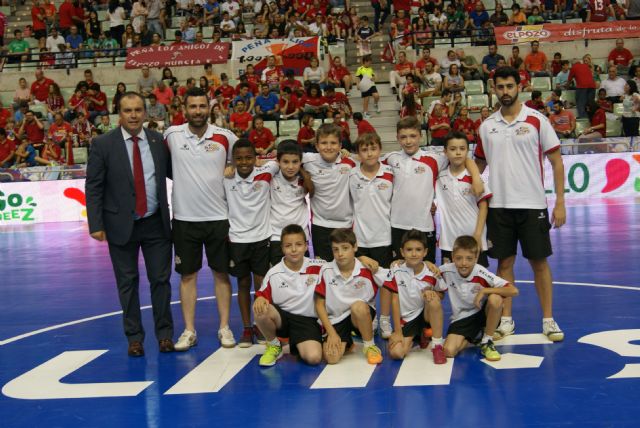 En el descanso del 2° Partido de Semifinales Play Off ante el FC Barcelona Alusport, el Palacio de los Deportes rindió un homenaje al equipo Aljucer ElPozo Benjamín A de 1ª Divisióntras proclamarse CAMPEÓN DE LIGA a falta de una jornada para concluir el campeonato y jugará el Campeonato de España.