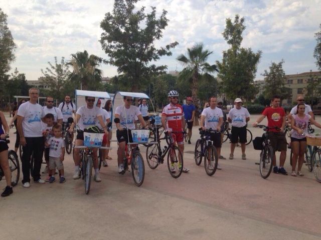 El concejal de Tráfico y Transportes, Javier Iniesta, acompañado por Rafael Melendreras, vicedecano del Grado de Ingeniería en Sistemas de Telecomunicación de la UCAM, ha participado esta mañana en la marcha ciclista del proyecto Mobisec, organizada conjuntamente por el Ayuntamiento y la Universidad Católica San Antonio.