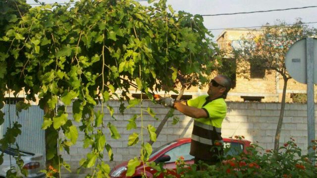 Además de llevar a cabo la eliminación de ramas, poda y recorte de arboles, los operarios de la concejalía, que dirige Adela Martínez-Cachá, también han plantado cerca de 2.500 geranios blancos en parterres (Avenida de los Pinos, Plano de San Francisco, Avenida Industria del barrio de El Carmen) y otras medianas.