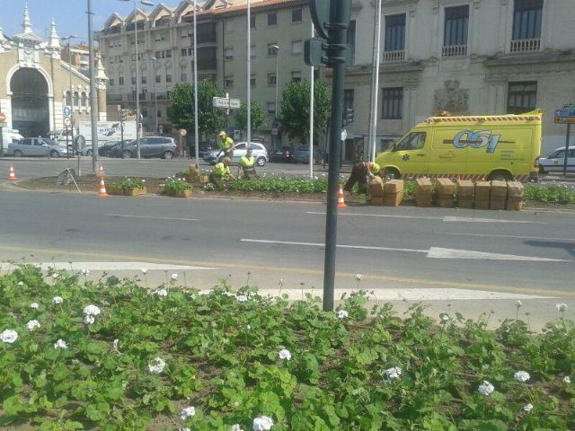 Los operarios de la concejalía también han plantado cerca de 2.500 geranios blancos en parterres de barrios y pedanías