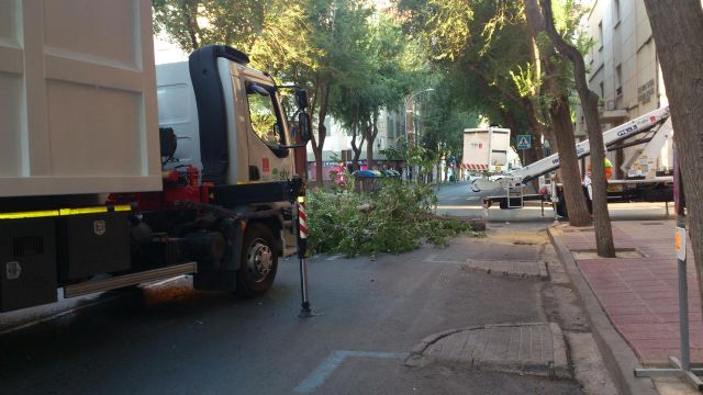 Otras de las actuaciones realizadas esta semana por la concejalía de Medio Ambiente ha sido la poda de descargue de los Olmos de Puerta Nueva.