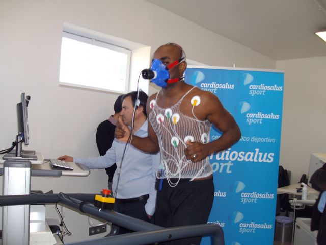 Este mediodía, bajo la supervisión del cardiólogo de Cardiosalus, Domingo Pascual, y el preparador físico del conjunto murciano, Diego Villarejo, realizó las pruebas de esfuerzo, las que pasó con nota por su buen estado de forma.