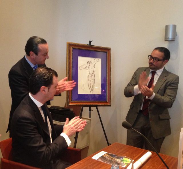 El concejal de Cultura, Rafael Gómez, acompañado por el presidente del Cabildo, Ramón Sánchez Parra y el secretario del Cabildo, Andrés Marín, han presentado esta mañana el cartel, el Nazareno del Año y el pregonero de la Semana Santa 2015.