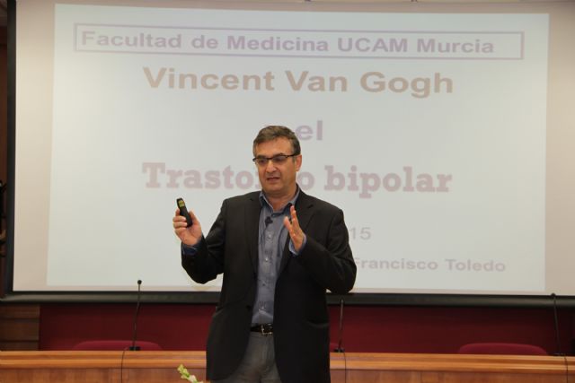 Los conocimientos existentes sobre Vincent Van Gogh y los documentos que han llegado hasta nuestros días hacen posible trazar un diagnóstico preciso sobre el trastorno bipolar que afectaba al pinto holandés. Así lo explica Francisco Toledo, psiquiatra Titular del Hospital Universitario Virgen de la Arrixaca y profesor de la Universidad de Murcia, en una conferencia ofrecida en el salón de actos de la UCAM: "Nosotros hacemos las historias médicas a través de la vida de los pacientes. Van Gogh nos da una doble vertiente ya que contamos con una serie de cartas que escribía a su hermano al tiempo que dibujaba los lienzos que marcaron una época, la del postimpresionismo. Gracias a ellos podemos establecer un diagnóstico de trastorno bipolar. Pero sí quiero dejar claro que este diagnóstico no tiene nada que ver con la genialidad de la obra que hizo. Pudieron estar mezclados durante un momento dado y es lo que intento poner de relieve".