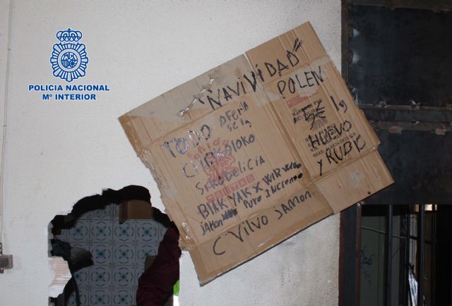 Agentes de la Policía Nacional han detenido a cuatro personas que habían habilitado un punto de venta de drogas a menores en un domicilio ocupado del polígono de La Paz en Murcia. Los arrestados facilitaban la droga a los jóvenes a partir de un euro, quedándose incluso en ocasiones con su documentación como garantía de pago. A los arrestados se les imputan delitos de tráfico de estupefacientes, receptación y defraudación de fluido eléctrico.