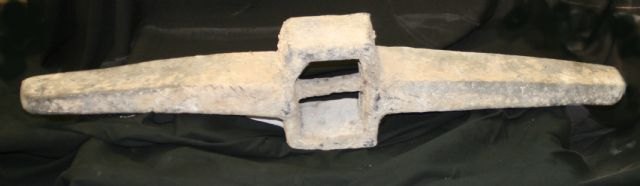 La pieza está fundida en plomo, mide 1,15 metros y fue recuperado por la Guardia Civil. El origen de esta pieza y el lugar en el que fue hallada se desconoce, ya que fue incautada a unos expoliadores por la Benemérita y entregada en depósito al Museo para su recuperación, análisis y exposición futura.