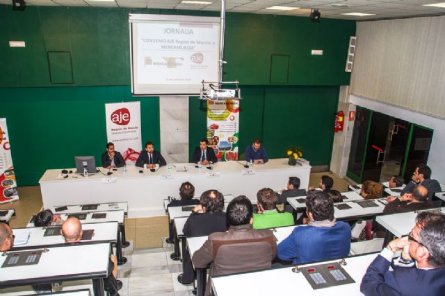 La firma del convenio ha tenido lugar esta semana en las instalaciones de Mercamurcia, lugar en el que también se llevó a cabo una jornada de presentación de AJE Región de Murcia y un seminario sobre "cómo crear y hacer que tu empresa funcione".