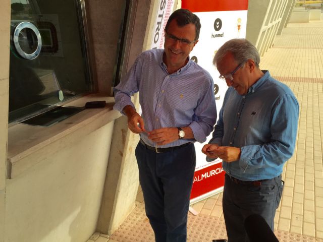 El Alcalde, José Ballesta, es, desde hoy, el abonado 7.563 del Real Murcia. Esta mañana se ha acercado a las oficinas de Nueva Condomina para adquirir su carné y mostrar de esta manera su apoyo en un momento difícil y complicado para el club. Un gesto que también ha realizado el Concejal de Deportes y Salud, Felipe Coello.