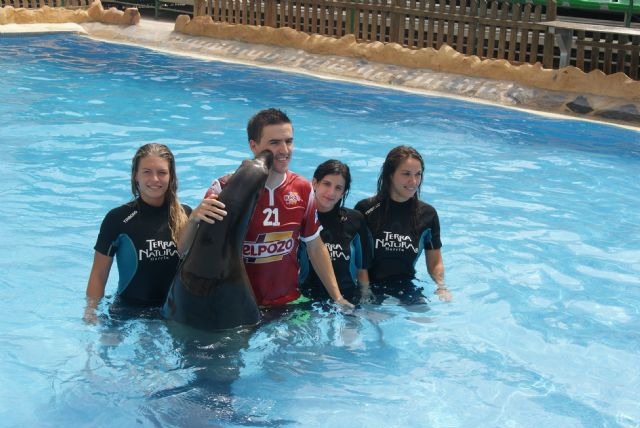 El ala-pívot y capitán de la Selección Croata, Dário Marinovic, ha sido presentado esta mañana en el parque Terra Natura Murcia como nuevo jugador de ElPozo Murcia FS acompañado del Director General del Club, Fran Serrejón. El jugador, tras comparecer ante los medios de comunicación, se ha atrevido a jugar con 'Wanda' el león marino del parque acuático.