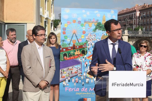 El cartel anunciador, obra de la murciana Carmen Artigas, es una invitación para volver a la infancia y dejarse envolver por la magia de la feria. “Las imágenes no necesitan palabras porque cada uno llevamos nuestros recuerdos de la Feria en el corazón”, ha señalado la artista, quien ha resaltado también cómo el “estallido de colores transmite la alegría y un mundo lleno de fantasía e ilusiones”. Carmen Artigas ha sabido captar en su obra la esencia de la feria, “haciéndonos recordar que un día fuimos niños”.