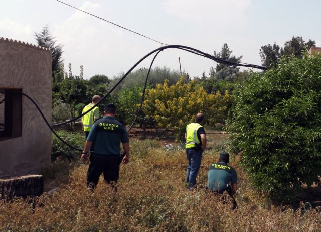Fruto de los dispositivos de vigilancia y del acoso policial desarrollado, generado con gran cantidad de patrullas en la zona, los autores fueron sorprendidos mientras cometían un robo en una vivienda de huerta de Torreagüera. Al detectar la presencia de la Guardia Civil, los autores huyeron del lugar por lo que se estableció un dispositivo de seguimiento en el que se realizaron batidas por una gran extensión de zona de huerta, que permitió localizar diversos objetos que los autores habían abandonado en su precipitada huida.
