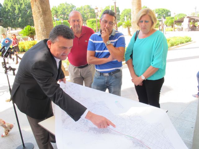 El concejal del PSOE en el Ayuntamiento de Murcia, Enrique Ayuso, acompañado por los representantes socialistas, Regina Sarría de Zeneta, Fernando González de Alquerías y Diego Martínez de Torreagüera, ha presentado este lunes una propuesta para convertir el antiguo trazado ferroviario de la Cordillera Sur en un corredor verde de comunicaciones y recreo.