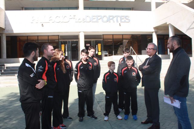 El concejal de Deportes y Salud, Felipe Coello, ha recibido esta mañana a los  8 alumnos murcianos que representarán a Murcia en el campeonato de España de Taekwondo por clubes.