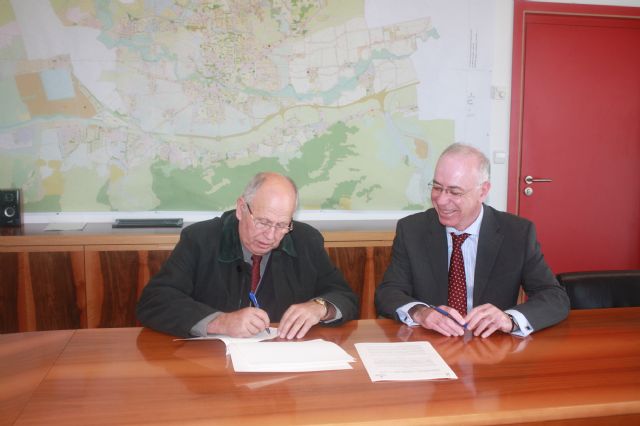El concejal de Urbanismo, Medio Ambiente y Huerta, Antonio Navarro Corchón, ha firmado esta mañana un convenio de colaboración con el presidente de la Junta de Hacendados de Murcia, Diego Frutos que establece las líneas de colaboración entre ambos para impulsar, desde los ámbitos patrimonial, turístico, paisajístico y cultural, el Plan de Acción de la Huerta de Murcia.