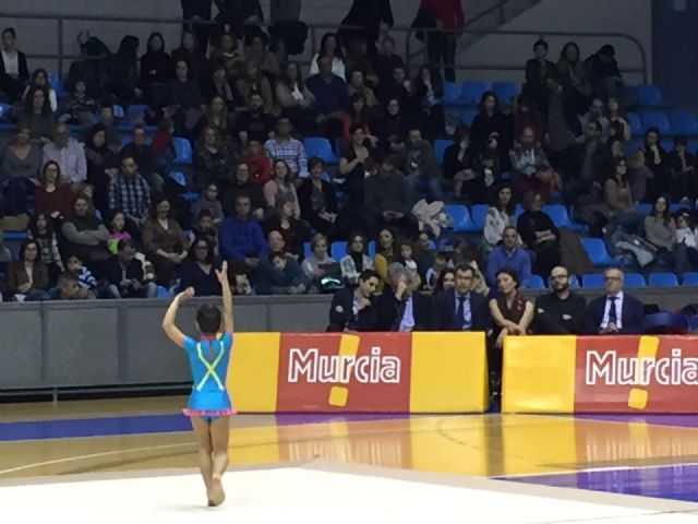 El Alcalde, José Ballesta, ha presenciado buena parte de las 33 actuaciones que han ofrecido las gimnastas, formadas en la escuela municipal que, por otra parte, fue la primera que se fundó en la región y se ha convertido en una de las que registran más inscritos.