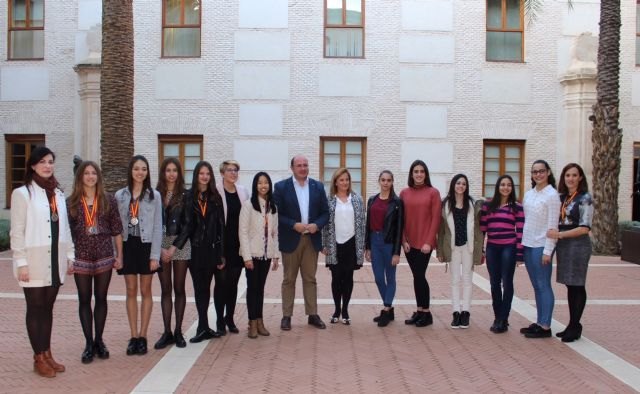 El presidente de la Comunidad, Pedro Antonio Sánchez, felicitó hoy a las deportistas y entrenadoras del Club Cronos de Puente Tocinos, tras proclamarse subcampeón de España en la categoría junior y conseguir el ascenso a Primera, máxima categoría a la que se puede llegar en la gimnasia rítmica.