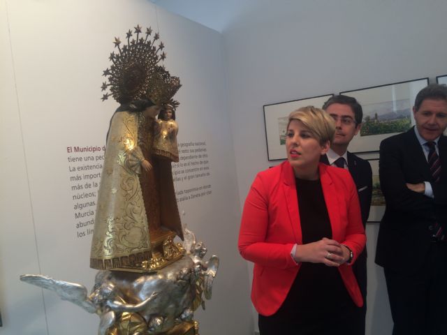 La consejera de Cultura y portavoz del Gobierno, Noelia Arroyo, presentó hoy, junto al alcalde de Murcia, José Ballesta, la talla de la Virgen de los Desamparados, que ha sido restaurada con motivo del 50 aniversario de Radio Nacional en Murcia.