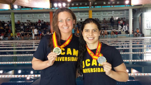 Gran exhibición de los nadadores de la UCAM en la primera jornada del Campeonato de España Universitario de natación que se disputa en Alcorcón. Trece medallas (7 de oro, 4 de plata y 2 de bronce) es el botín que acumula la Universidad Católica de Murcia que busca revalidar su condición de primera potencia universitaria en la piscina.