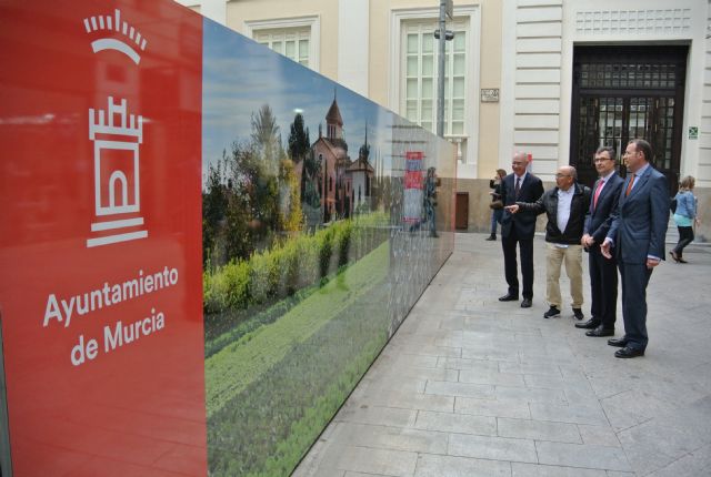 Las imágenes, cuyo autor es el fotógrafo Joaquín Zamora, que también ha estado presente en el acto, representan, en una de las caras (la de la calle Radio Murcia), la Huerta de Murcia en las que aparece el Cristo de Monteagudo, una plantación en un bancal y una imagen típica de la Huerta. En la calle Arquitecto Pedro Cerdá aparecen detalles del interior del Casino de Murcia que pueden pasar desaparecidos en su visita.