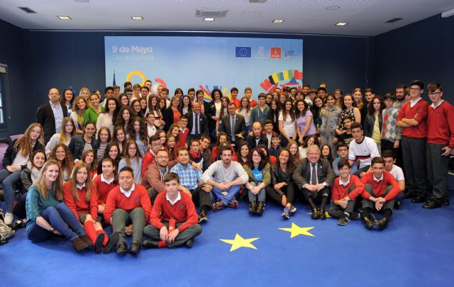 El alcalde de Murcia, José Ballesta, y el presidente de la Comunidad, Pedro Antonio Sánchez, participaron hoy en las actividades del ‘Día de Europa’, una conmemoración en la que se celebra la paz y la unidad del continente europeo, y en la que en Murcia fueron protagonistas alumnos de diferentes centros educativos y jóvenes participantes en el concurso Euroescola, que interpretaron el Himno de Europa, participaron en un debate público y en la creación de un montaje con propuestas e ideas de mejora.