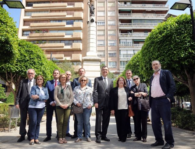 La obra al aire libre, inaugurada hoy, tiene como objetivo embellecer el espacio entre Santa Isabel y la posada de Santa Catalina, través de retratos y obras de una generación histórica de la cultura murciana. Ballesta realizó la ofrenda de una corona de laurel a los Hijos Ilustres de la ciudad, con la que "recuperamos la figura de todos aquellos que dedicaron su vida a la preservación de nuestro patrimonio"