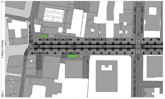 El arquitecto ha indicado que, además, "una de las cosas que se consiguen con el proyecto es que las terrazas de la hostelería estén junto a los locales, en lugar de que los camareros tengan que atravesar la calzada, lo cual supone un peligro". Además, ha resaltado que "se puede ejecutar por fases, en función de la disponibilidad económica o funcional de que se disponga".