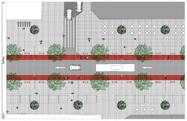 La formación municipal ha presentado un proyecto realizado por el arquitecto y urbanista Felipe Iracheta, consistente en una vía rodada central de sentido único, con un carril bici a cada lado y la peatonalización de los laterales de la avenida