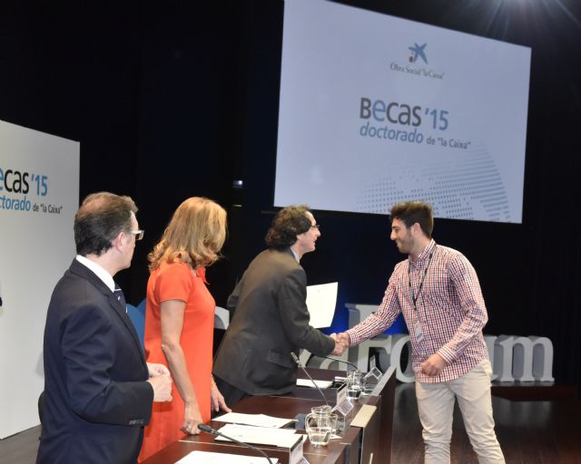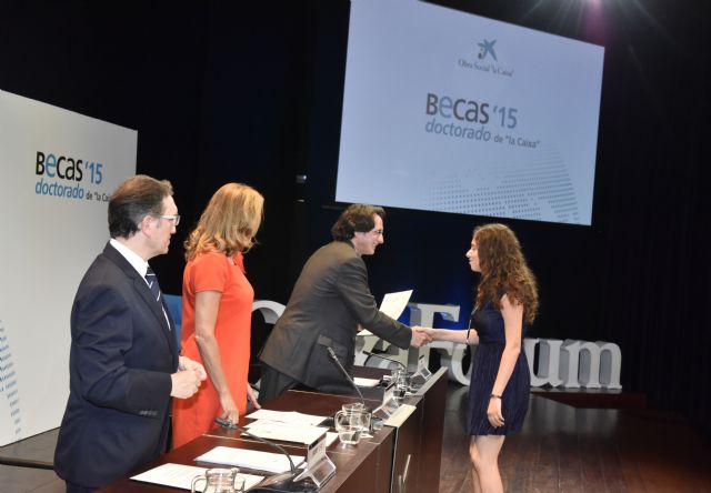 Cuatro universitarios murcianos han recibido las becas para cursar un doctorado en universidades y en centros de investigación de referencia de España en el acto que se ha celebrado en Caixa Forum Barcelona.