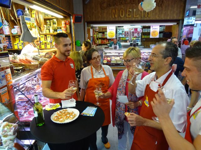 Durante el acto, al que han asistido la concejal de Comercio, Maruja Pelegrín; el presidente de la Asociación de Comerciantes, Santiago Molinero Gómez; y el responsable de Comunicación de Estrella de Levante, Juan Miguel Gómez, se han degustado productos de diferentes comercios de la Plaza.