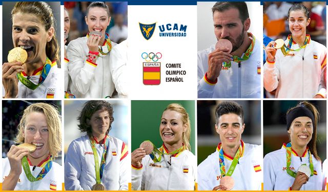 Gracias a ello, 55 deportistas de la Universidad Católica de Murcia formaron parte del equipo español y nueve de ellos lograron once de las diecisiete medallas de España en Río: Mireia Belmonte (oro y bronce en natación); Saúl Craviotto (oro y bronce en piragüismo); Carolina Marín (oro en bádminton); Maialen Chourraut (oro en piragüismo en aguas bravas); Ruth Beitia (oro en atletismo); Eva Calvo (plata en taekwondo); Artemi Gavezou (plata en Gimnasia Rítmica con el equipo español); Lidia Valentín (bronce en halterofilia); y Joel González (bronce en taekwondo).