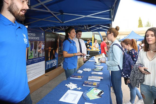 La Universidad Católica de Murcia ha iniciado esta mañana los actos programados para dar la bienvenida a sus estudiantes, que se han encontrado en la Plaza de las Pérgolas del Campus de Los Jerónimos con stands informativos y diversas actividades de ocio. Durante el acto los asistentes han podido conocer el equipo de ESports de la Universidad, el Servicio de Actividades Deportivas o sobre trasporte universitario. Además, han podido escuchar una demostración de guitarra y cajón flamenco, o disputar un partido de tenis de mesa contra la cinco veces campeona de la Superdivisión Femenina, Iulia Nécula.
