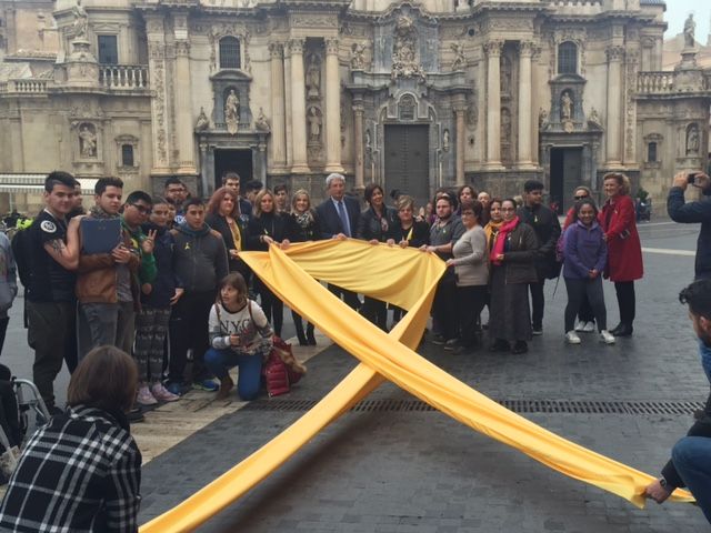 El edificio Moneo se ilumina esta noche de color amarillo para conmemorar el Día Mundial de la Espina Bífida