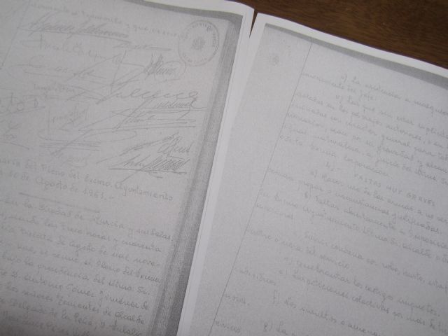 Morales explica que el actual Reglamento de la Policía Local de Murcia es "un documento escrito a mano, transcripción del acta de la sesión del Pleno Municipal del 30 de agosto del año 1961. Conseguimos que se nos remitiera una copia de este documento tras 7 meses de solicitudes y comunicaciones interiores a diversos departamentos del Ayuntamiento, ya que no consta en la web municipal".