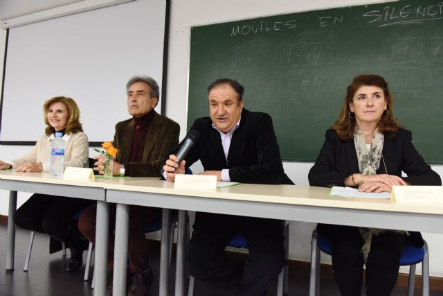 El pintor Pedro Cano, doctor honoris causa por la Universidad de Murcia (UMU), ha ofrecido una conferencia a los estudiantes del Aula Sénior de esta institución docente.