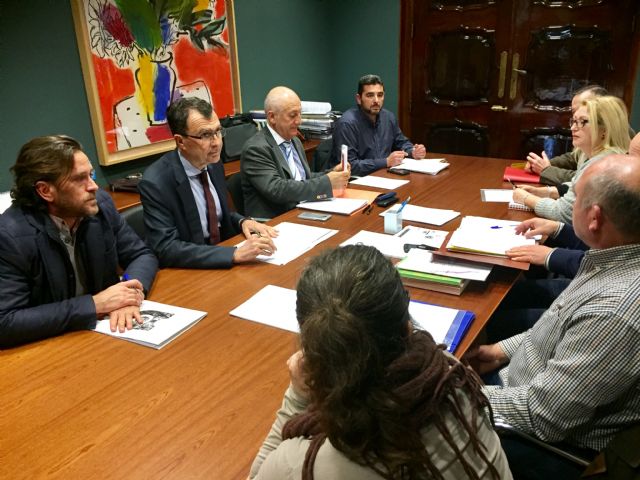 El alcalde de Murcia, José Ballesta, acompañado del concejal de Fomento, Roque Ortiz, y un técnico del Departamento de Ingeniería Civil municipal recibieron esta tarde a la Asociación de Vecinos afectados por la zona industrial del Camino de Tiñosa, para escuchar en primera sus propuestas y comentarios, así como darles cuenta de manera detallada de los informes técnicos del proyecto que Adif está desarrollando, para la llegada de la alta velocidad a la Región.