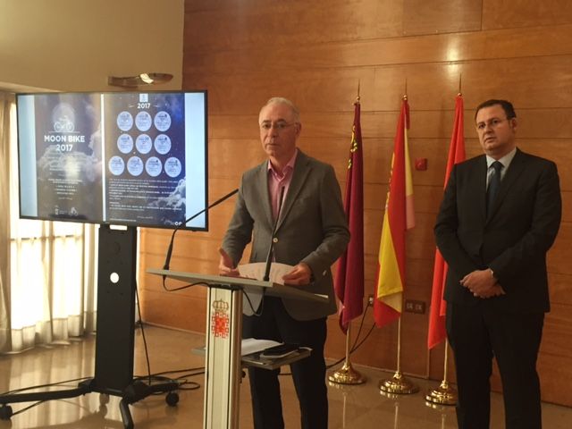El concejal de Urbanismo, Medio Ambiente y Huerta, Antonio Navarro Corchón, acompañado del concejal de Modernización de la Administración, Calidad Urbana y Participación, José Guillén, ha presentado, a través de la Oficina de la Bicicleta, la tercera edición de las rutas en bicicleta ‘Moon Bike’, que invita a los murcianos a realizar recorridos por el municipio bajo la luna llena a partir del próximo 11 de febrero.