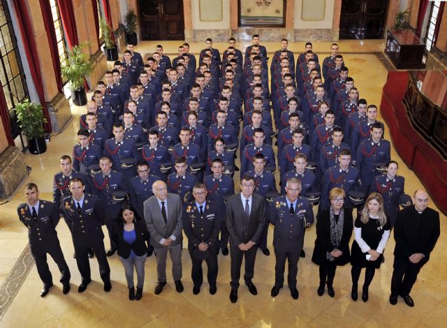El alcalde de Murcia, José Ballesta, y miembros de la Corporación municipal recibieron hoy en el Salón de Plenos a los 105 Caballeros y Damas alumnos de nuevo ingreso de la Academia General del Aire (AGA) de San Javier.