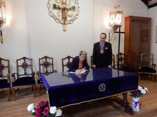 Junto al presidente de la cofradía fundada a mediados del pasado siglo, José Ramón Guerrero, la titular de Cultura realizó un recorrido por la nueva sede de la hermandad, en el edificio anexo a la iglesia, y destacó “el firme apoyo del Gobierno regional a todas las tradiciones de la Región, incluyendo la Semana Santa de Murcia, declarada de Interés Turístico Internacional”, y recordó que “por su gran importancia y riqueza, se incluirá un capítulo especial dedicado a las tradiciones de nuestra tierra en la Ley General de Cultura que estamos elaborando”.