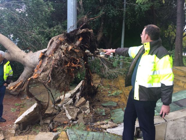 Entre otros lugares, el viento ha provocado la caída de árboles en La Fica, Plaza Inocencio Vera, Plaza Circular, avenida de La Fama, avenida Primero de Mayo, calle Puerta Nueva, Palacio de Justicia, Escuela de Artey El Palmar, Cobatillas, Puente Tocinos, Los Garrea y Sucina.