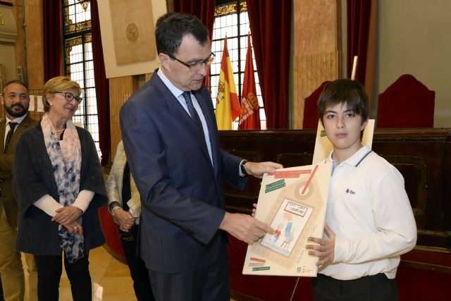 El alcalde de Murcia, José Ballesta, y la concejal de Comercio, Organización y Relaciones Institucionales, Maruja Pelegrín, hicieron hoy entrega de los premios del Concurso Escolar de Carteles por el Día Mundial de los Derechos del Consumidor, que se ha celebrado bajo el lema ‘Todos somos consumidores’ y ha permitido trasladar a las aulas la importancia de realizar un consumo seguro, responsable y sostenible.